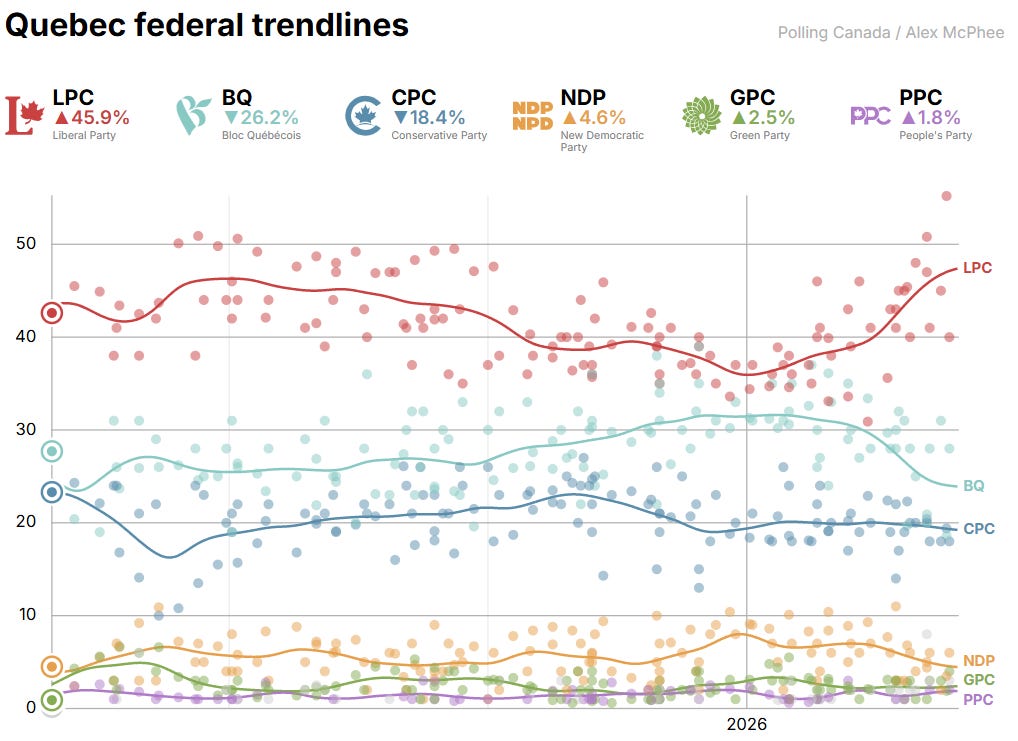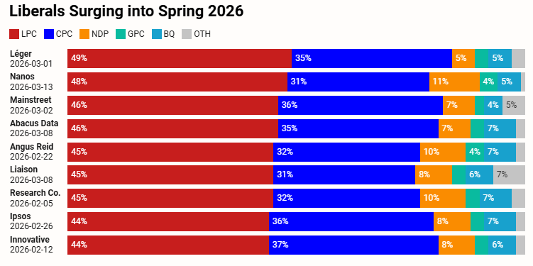 I’ve written some words on the potential impact of the next NDP leader on Alberta (because it’s a thing), but I haven’t spared much thought about what that might mean federally. In their current position, still weakened by the withdrawal of support during the last election, and nearing the end of an almost record-long leadership race that even my politically dedicated and NDP-leaning discord is hardly talking about anymore, I didn’t think there was much to say. Until I noticed something in the recent compilation of federal polling.